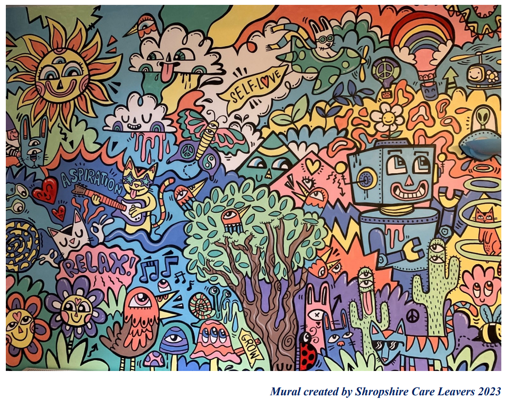 28/10/2024 / Permalink / Full size is 1054 × 832 pixels Beyond - All of us, We are one graphicMural created by Shropshire Care Leavers