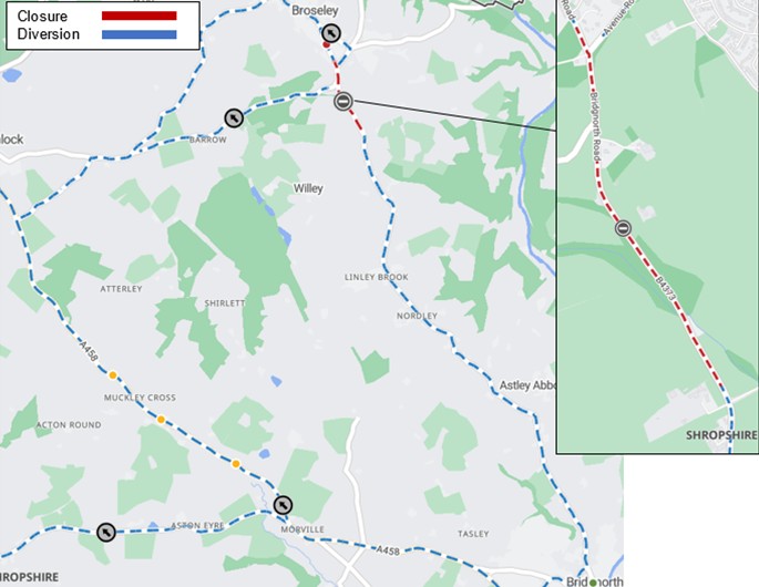 The B4373 Bridgnorth Road, Broseley is to be resurfaced from Monday 15 to Wednesday 24 September [2025] as part of Shropshire Council’s resurfacing programme.
