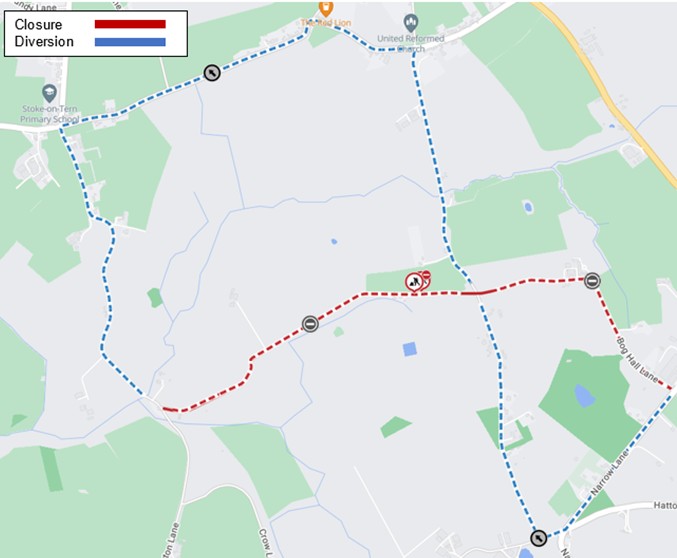 Hurst Lane near Stoke Upon Tern is to be resurfaced from Monday 17 to Friday 21 November [2025] from the Tracey Cottages junction to the Fernydale Wood junction.