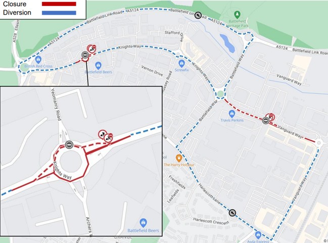 Two roads in the Battlefield area of Shrewsbury are to be resurfaced from Monday 2 to Saturday 7 February [2026].