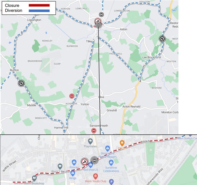 Aston Street and High Street in Wem are to be resurfaced overnight from Monday 2 to Sunday 15 March [2026].