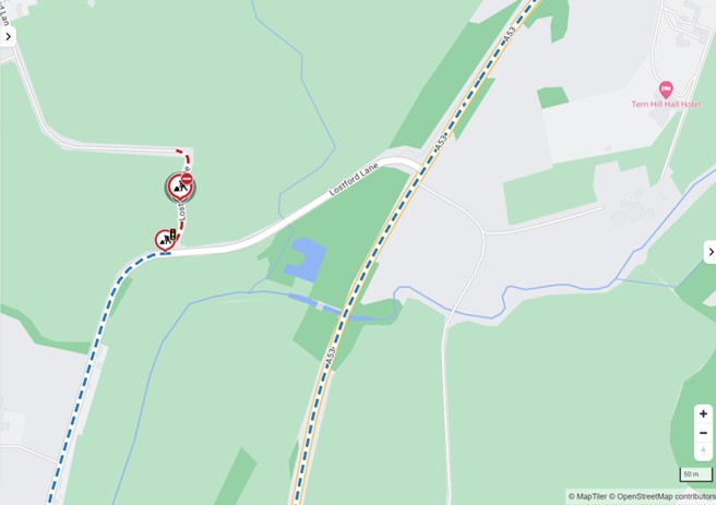 During the work the road will be closed to vehicles 24 hours a day to ensure the safety of the public and the workforce. Two-way traffic lights will also be in operation 24 hours a day at the junction of Lostford Lane.