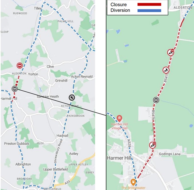 The B5476 from Harmer Hill to Alderton is to be surface dressed between 7 April and 14 May [2026]. Work will be carried out in three phases as follows, when the road will be closed from 9.30am to 4pm each day.