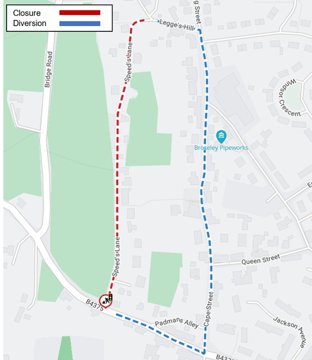 Speeds Lane in Broseley is to be resurfaced from Monday 27 April to Friday 1 May [2026].